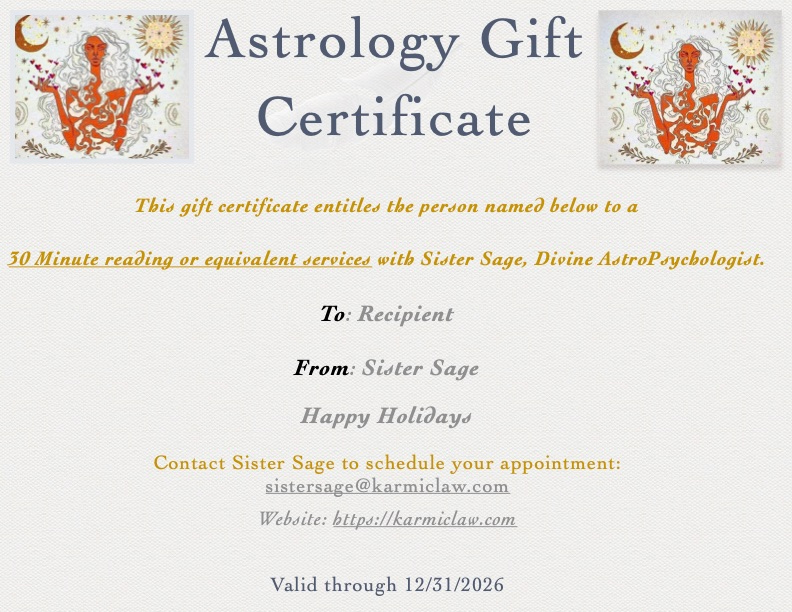 With all the ideas in the world of what to gift to another, including yourself, I am offering several specials and an opportunity to have your own Private Holiday Zoom AstroPsychology Party. |